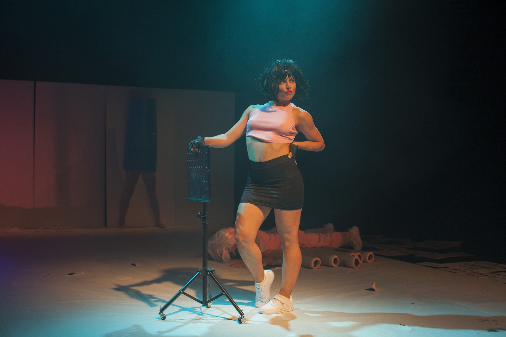 Nus-altres possibles es una pieza coreográfica que dialoga con el lenguaje verbal para generar desplazamientos y nuevas lecturas de los signos que aparecen en escena. La obra se construye como un collage que integra referencias iconográficas y de la cultura pop, ampliando y difuminando el imaginario colectivo en torno al cuerpo, la imagen, la materialidad y el sonido.