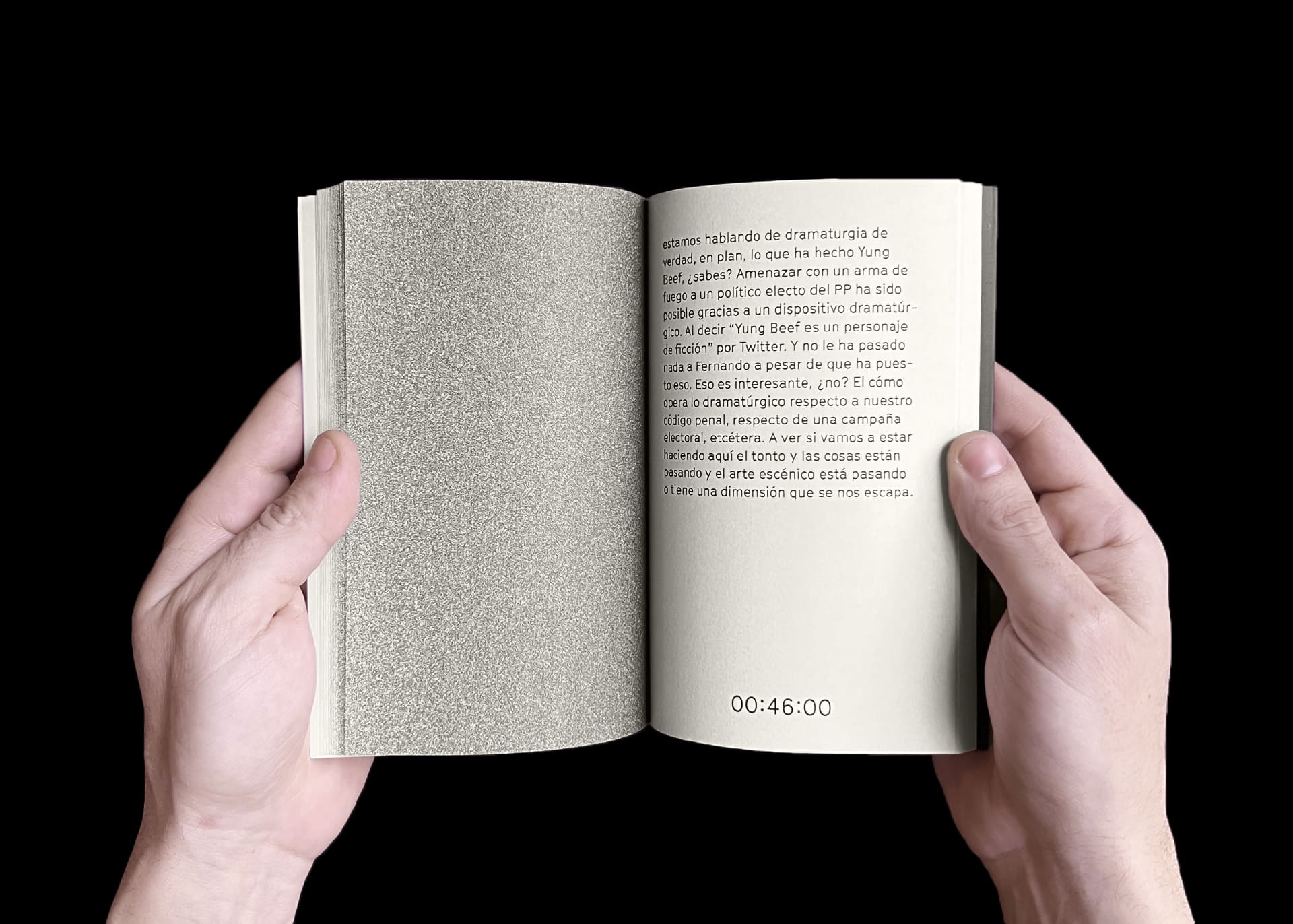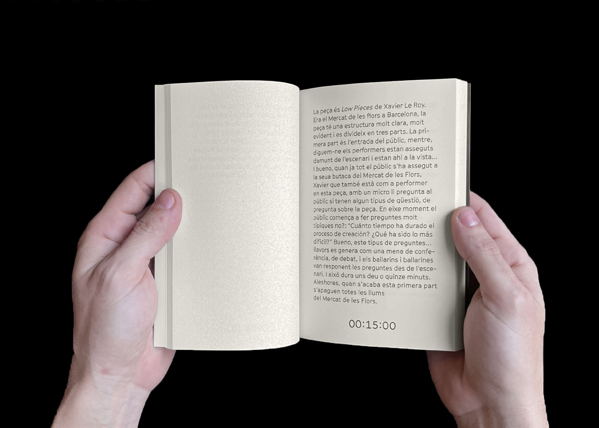 Este libro pretende trasladar la experiencia de una persona que haya vivenciado FOSC en un teatro –junto a otras espectadoras– a cualquier otro espacio donde este libro pueda ser leído, y en el que cada lectora implique su cuerpo propiciando una relación íntima con el texto. Es por ello que hemos querido ser fieles a algunas decisiones dramatúrgicas o coreográficas de la obra escénica: la importancia del tiempo que dura cada memoria relatada y sus correspondientes silencios, el diseño de luces, la lengua original de cada testimonio o los momentos en los que en escena ocurre algo diferente a una narración hablada.